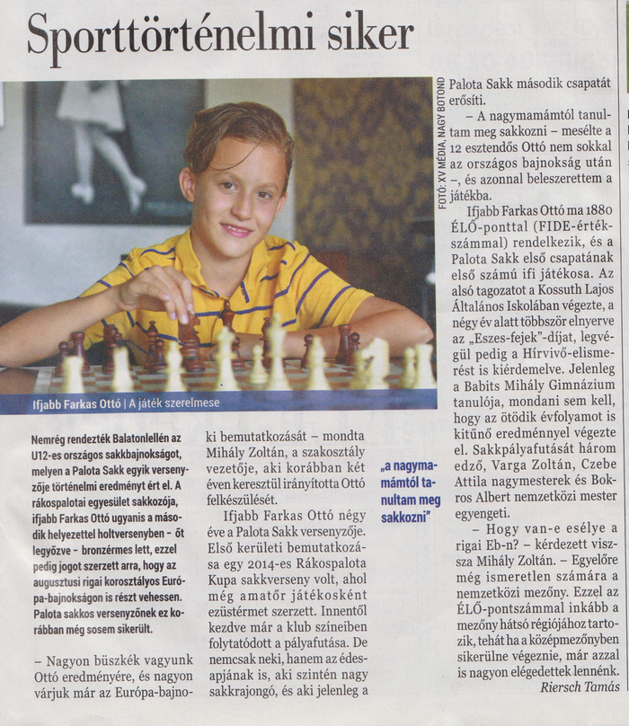 „…nagyon jól érezte magát a sakkversenyen, sajnálta, hogy vége. Nagyon küzdött, ahogy én láttam, nem vártam tőle “ilyen szép eredményt”. Apa is örült itthon az eredményének. Köszönjük az odafigyelést és a beléfektetett munkát!" |
